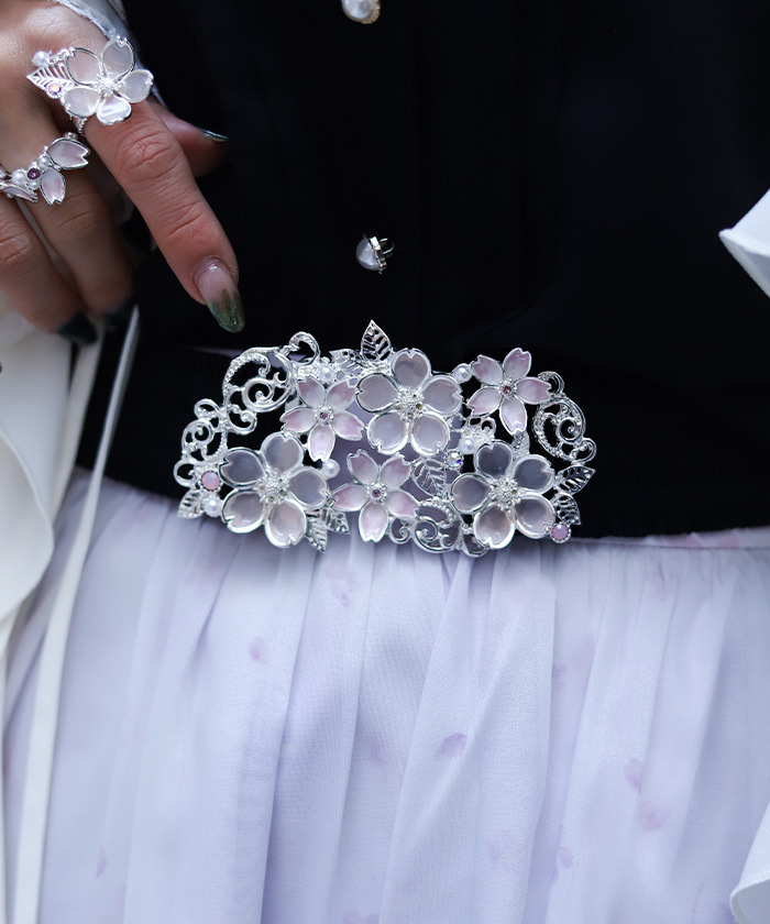 【穿搭建議】 可搭配同系列櫻花主題小物,打造完整春日造型。以同色系單品搭配可提升整體一致性,再加上櫻花飾品點綴,更能展現華麗優雅的春季氛圍。