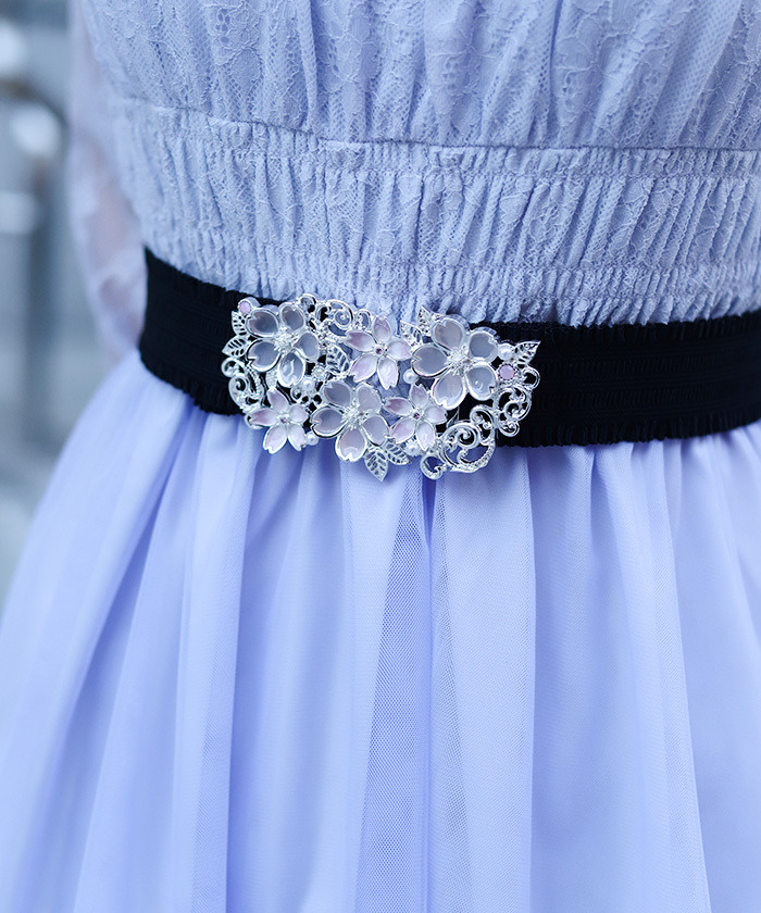 【設計】 柔和淡雅的配色展現優雅氣質,十分適合春季穿搭。結合細緻裝飾的華麗扣環設計為整體亮點。鬆緊帶材質帶來舒適貼合感,並可依需求調整尺寸,兼具美觀與實用性。