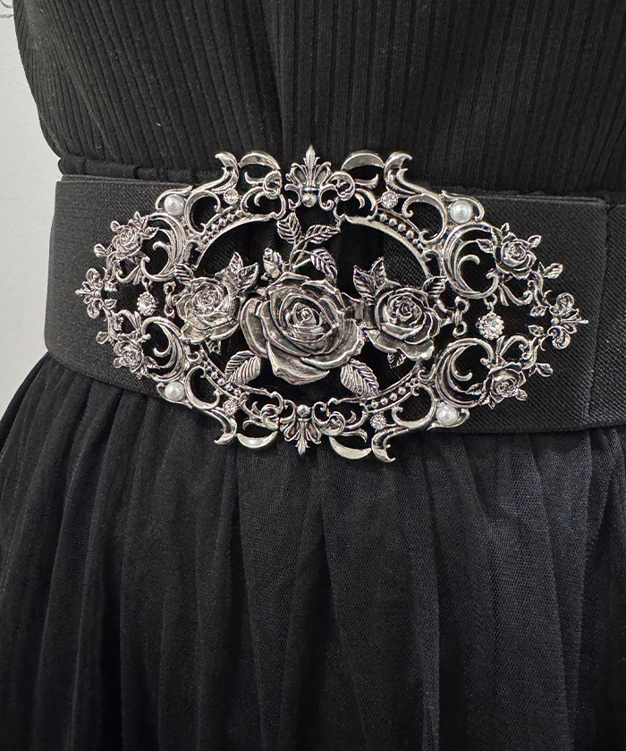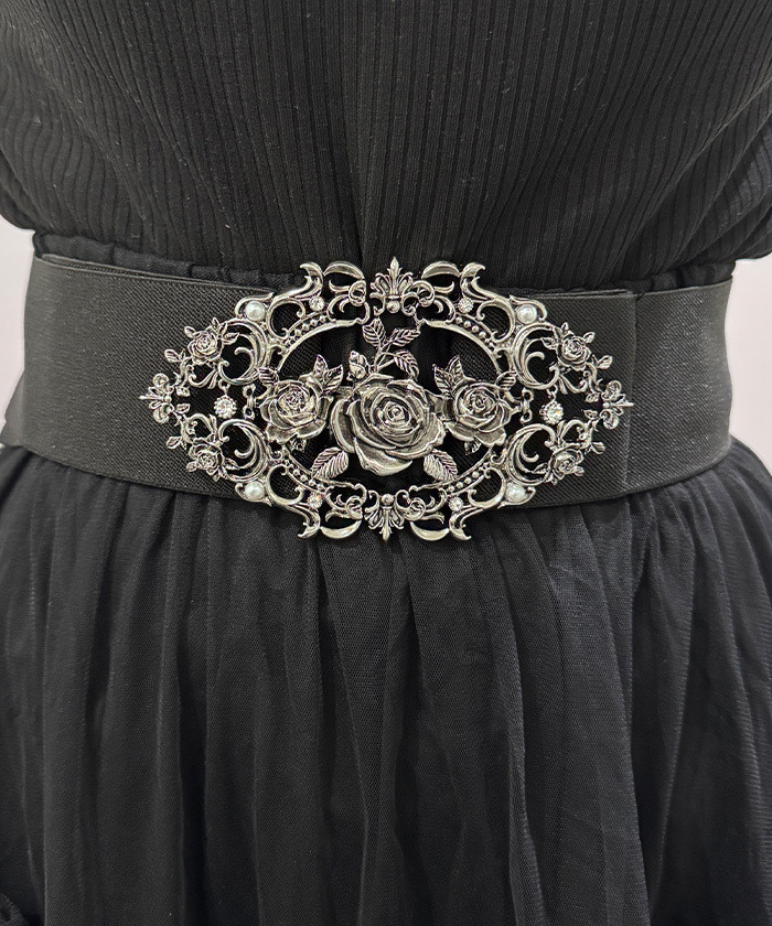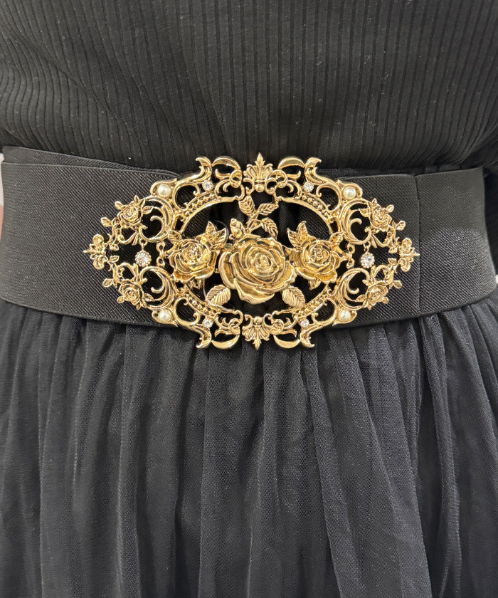 【商品介紹】 以薔薇造型與華麗裝飾打造的寬版彈性腰帶,簡單搭配即可提升造型感,為穿搭增添優雅氣息。
