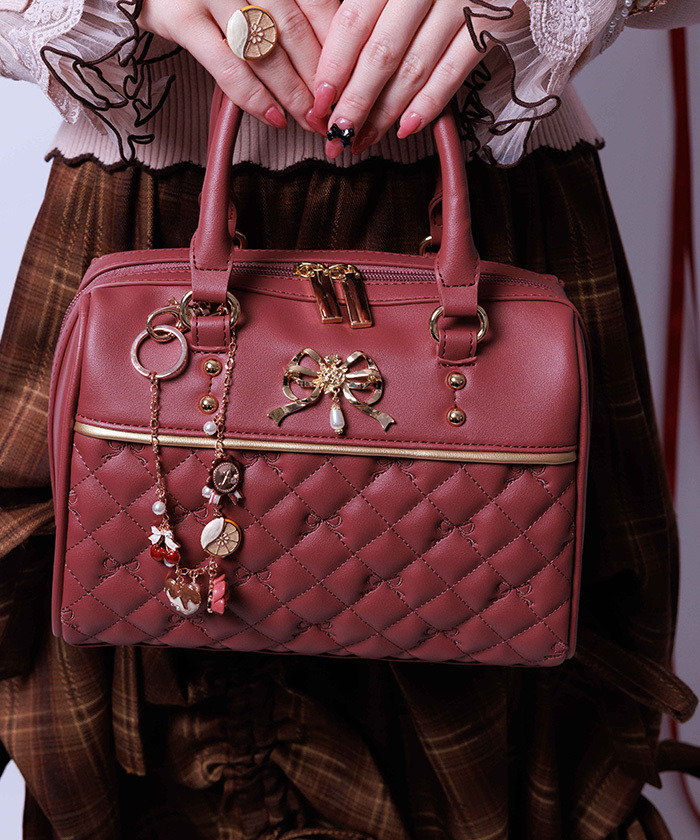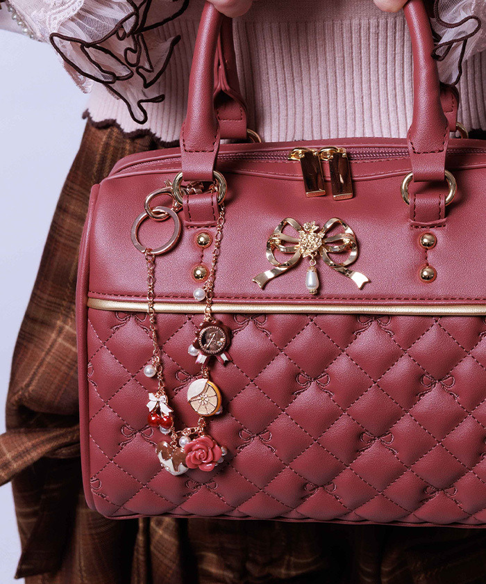 「商品設計:」 以巧克力與水果為靈感設計,包含櫻桃、橘子等水果造型,以及心形、玫瑰與印章造型巧克力裝飾。搭配珍珠點綴,增添優雅質感。掛飾可掛於包包手把間,隨著行走輕輕擺動,為包包增添華麗細節,是包包造型的完美點綴。