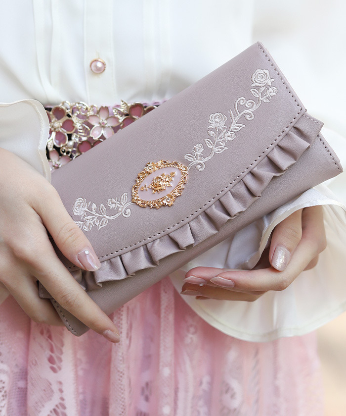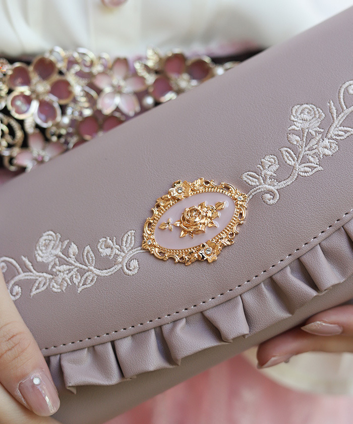 【商品介紹】 以精緻玫瑰刺繡為亮點的長夾,華麗優雅且實用,內部分隔清晰,方便分類紙鈔、收據與零錢,是兼具美感與大容量收納的理想配件。