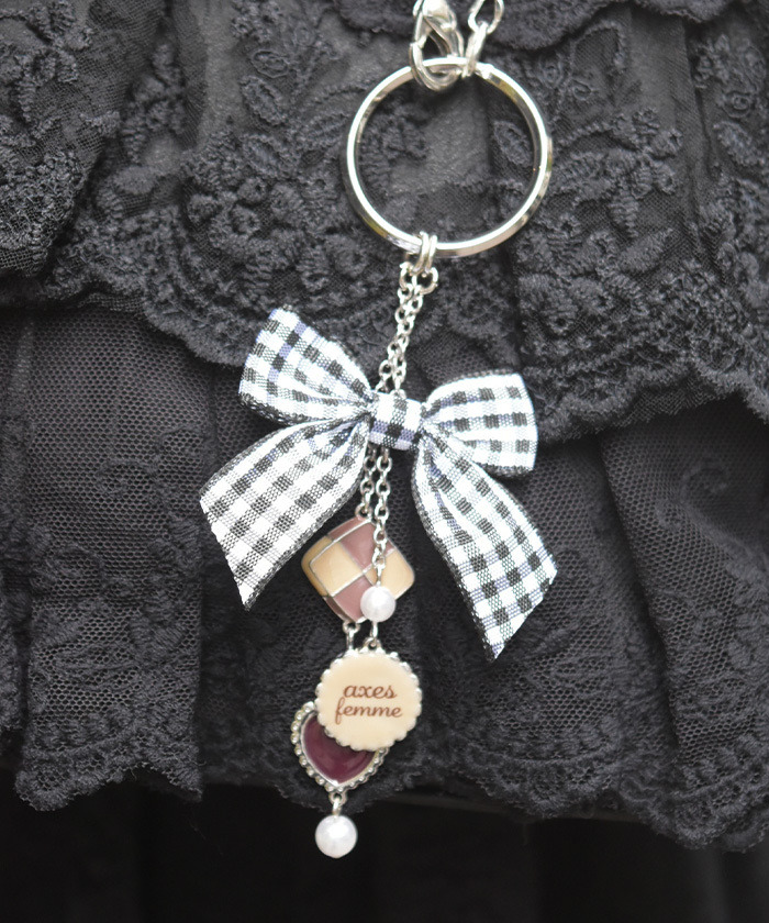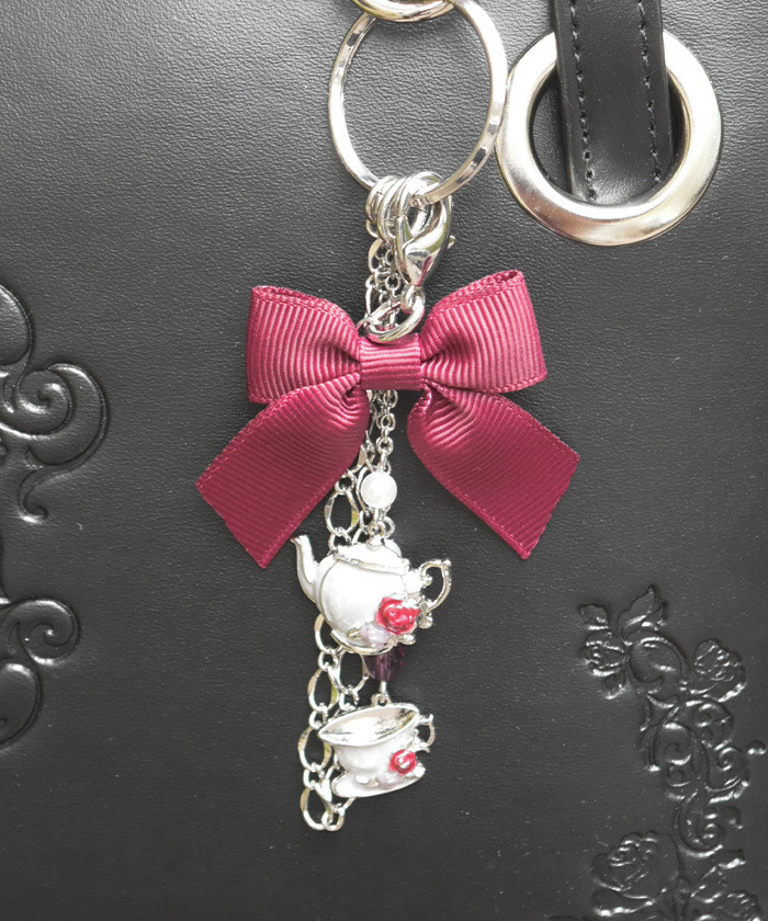 【設計】 以茶杯與茶壺造型搭配素色羅紋緞帶,展現沉穩優雅氣質;餅乾造型則結合格紋緞帶,呈現明亮活潑的氛圍。不同元素各具特色,打造豐富層次感。 附有圓環與鍊條兩種扣件,可依包款自由調整使用方式,輕鬆變換風格,是兼具設計感與實用性的配件。