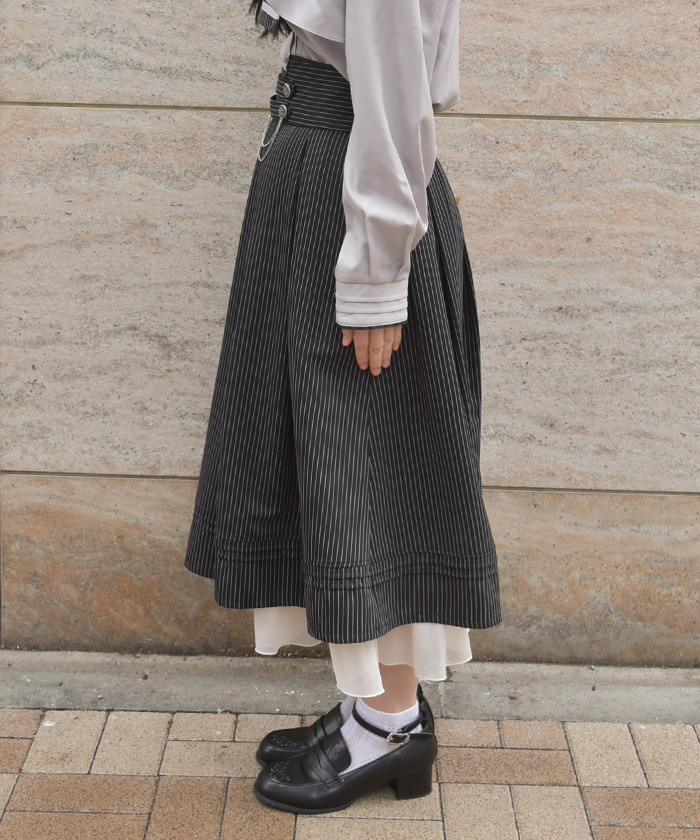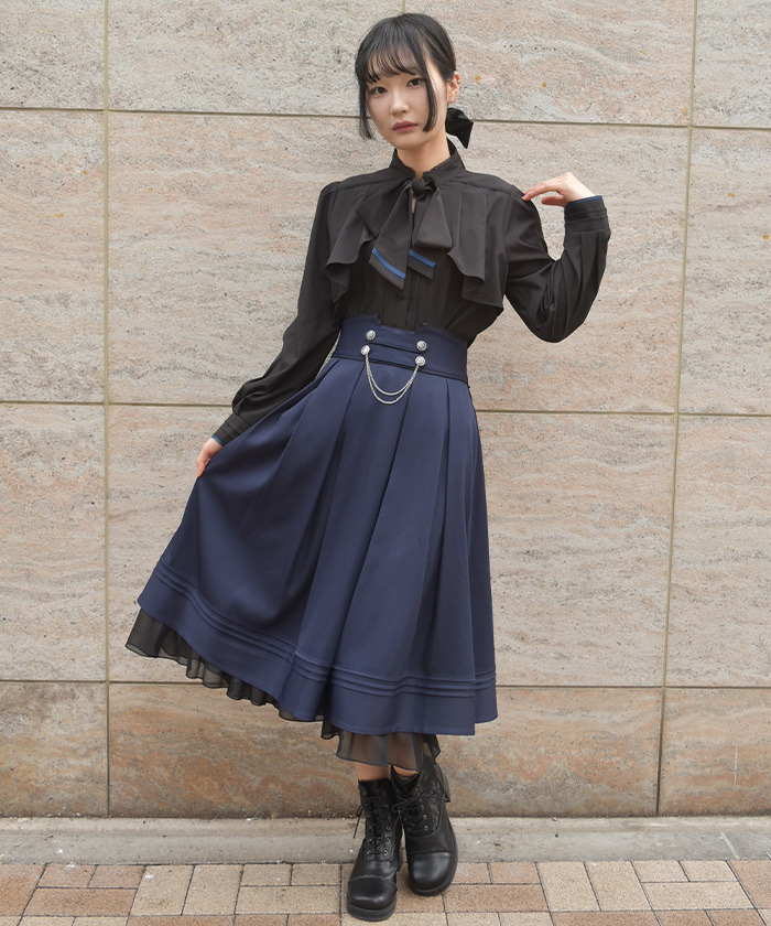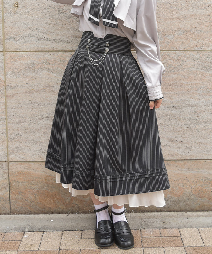 【商品介紹】 融入古典細節設計的優雅傘襬裙,腰間鈕扣與鍊條點綴增添質感層次,展現端莊氣質與柔美輪廓,是兼具優雅與實穿性的百搭單品。