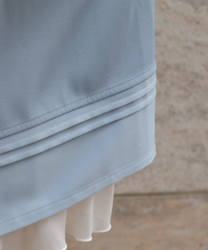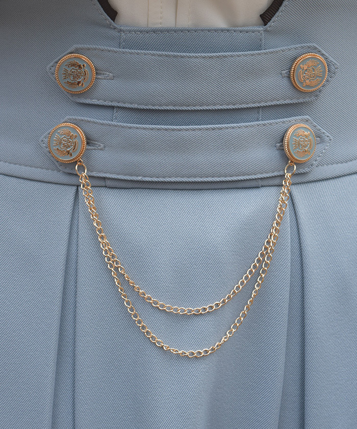 【設計】 腰部鈕扣與鍊條造型作為低調亮點,從打摺延伸而下的裙襬勾勒出優美線條。下擺自然蓬展的傘形剪裁,散發濃厚古典氛圍,穿出端莊高雅氣質。