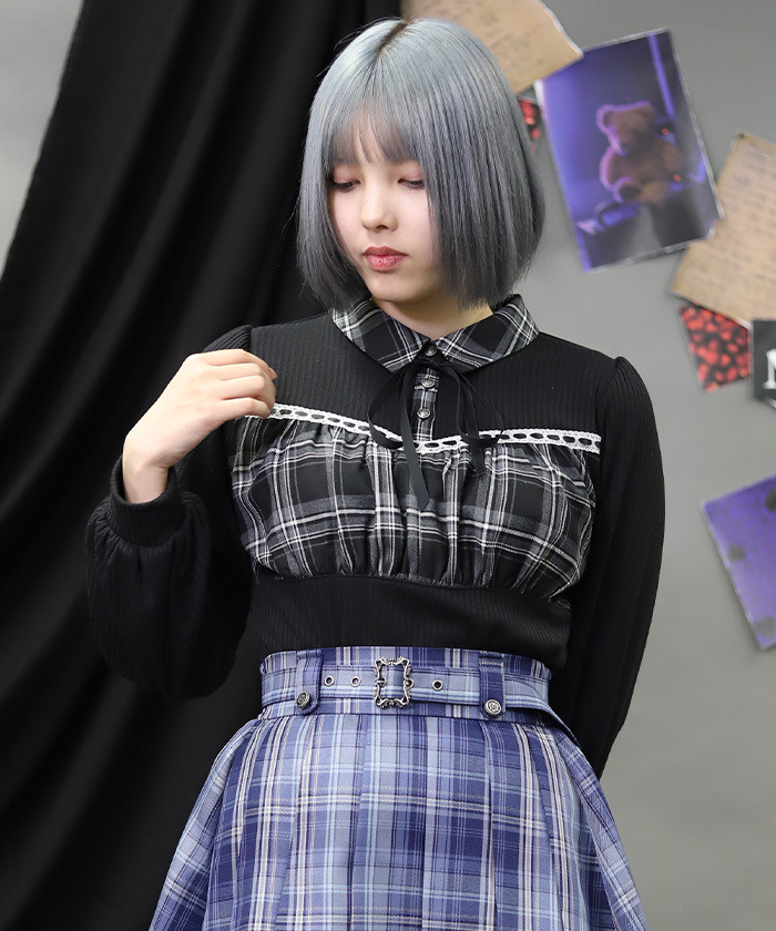 【設計】 彷彿將格紋襯衫與棉質上衣層層疊穿般的設計,是一款相當可愛的單品。 無論休閒或甜美風格都能輕鬆駕馭,是百搭實穿的上衣。 衣身採用棉質針織(cut sew)材質,具備彈性,穿著舒適度佳◎。