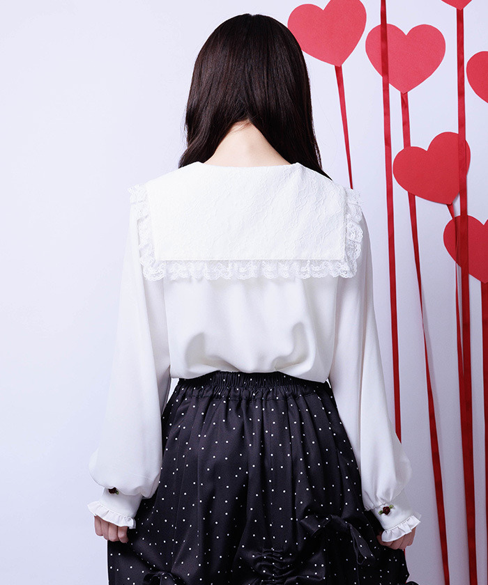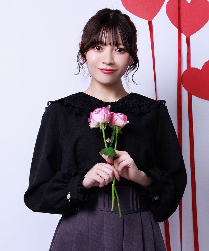 【商品設計】採柔軟面料,穿著舒適且富有高雅甜美氣息。前方玫瑰刺繡作為細緻點綴,增添溫柔感;立領與襯領處疊加蕾絲設計,讓臉部輪廓更柔和、提升華麗感。整體設計甜美卻不失精緻感,可單穿或作為內搭皆適合。