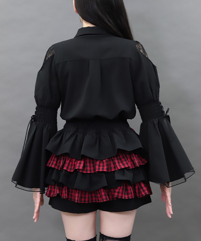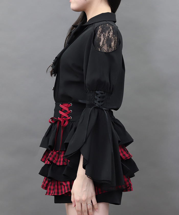 【搭配建議】 推薦與綁帶荷葉邊褲裙搭配。 滿滿荷葉邊的穿搭再加上一些配件點綴,打造帶點「毒感」的暗黑甜美風格♥