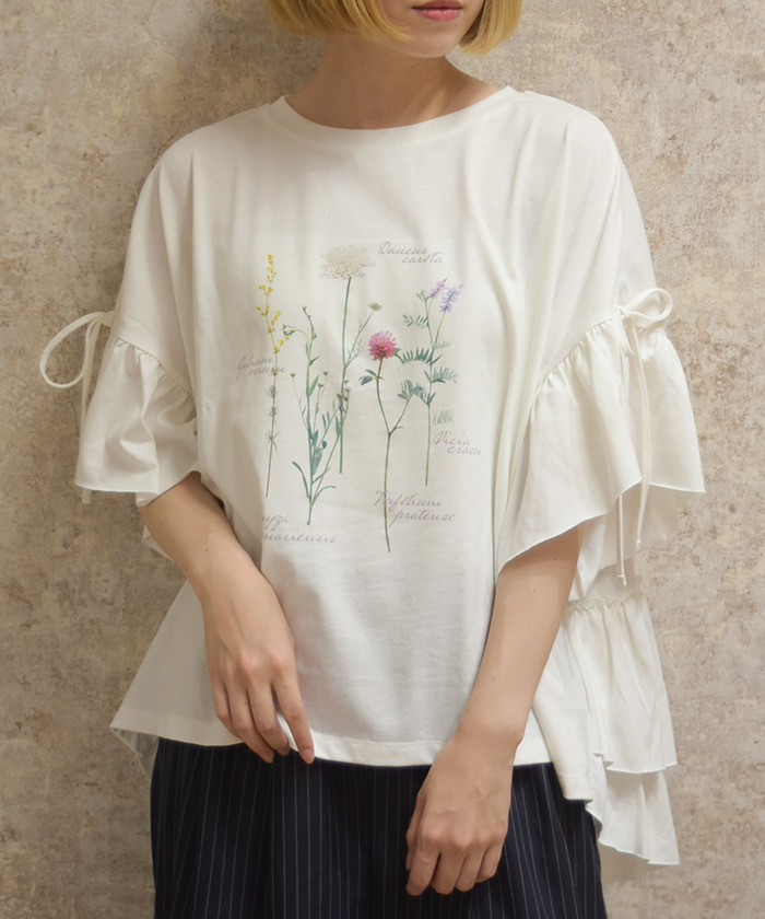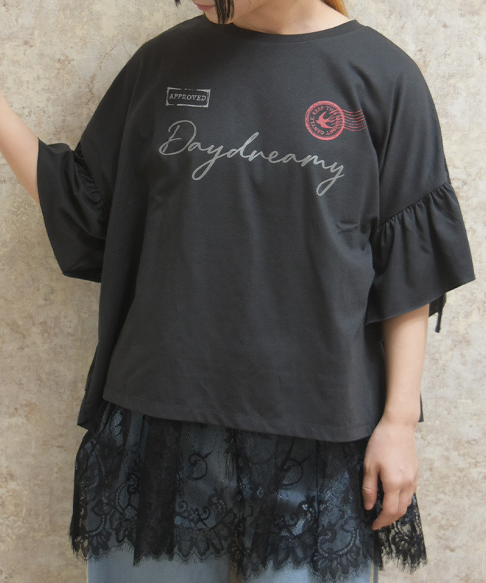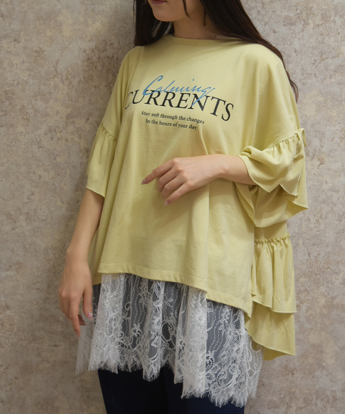 【設計】 採用寬鬆Oversize剪裁,營造輕鬆自在的穿著體驗。袖口與下擺點綴荷葉邊細節,在休閒中增添柔和甜美感,讓整體造型更具層次與存在感。