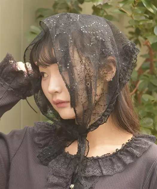 【商品介紹】 閃亮亮片蕾絲頭巾,細緻蕾絲搭配小巧亮片,隨動作閃爍光澤,甜美優雅,是髮型或包包點綴的亮眼配件。