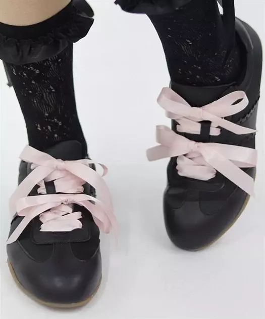 【商品介紹】 甜美配色的平底運動鞋,雙層緞帶與心形雕花細節增添俏皮感,兼具舒適與潮流感,是春日學院風與休閒造型的理想鞋款。