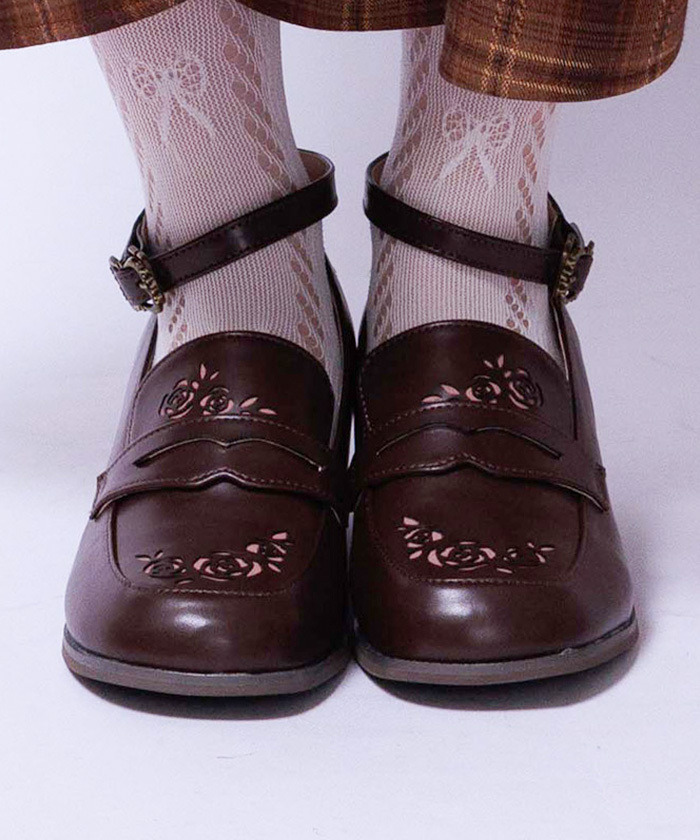 【商品介紹】 玫瑰花圖案鏤空設計的優雅樂福鞋,簡約俐落鞋型搭配細緻鏤空花紋,兼具甜美與高雅氣質,足踝帶設計穩固舒適,適合日常與正式場合穿搭。