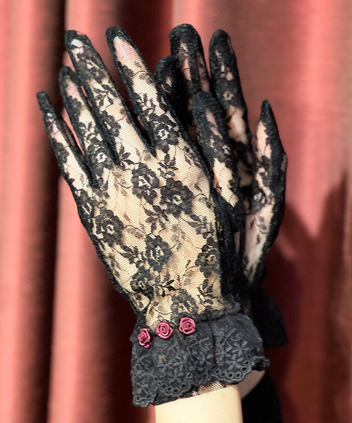【商品介紹】 以玫瑰裝飾點綴的全蕾絲手套,為雙手增添優雅氣質,細緻浪漫的設計讓整體造型更顯高級感。