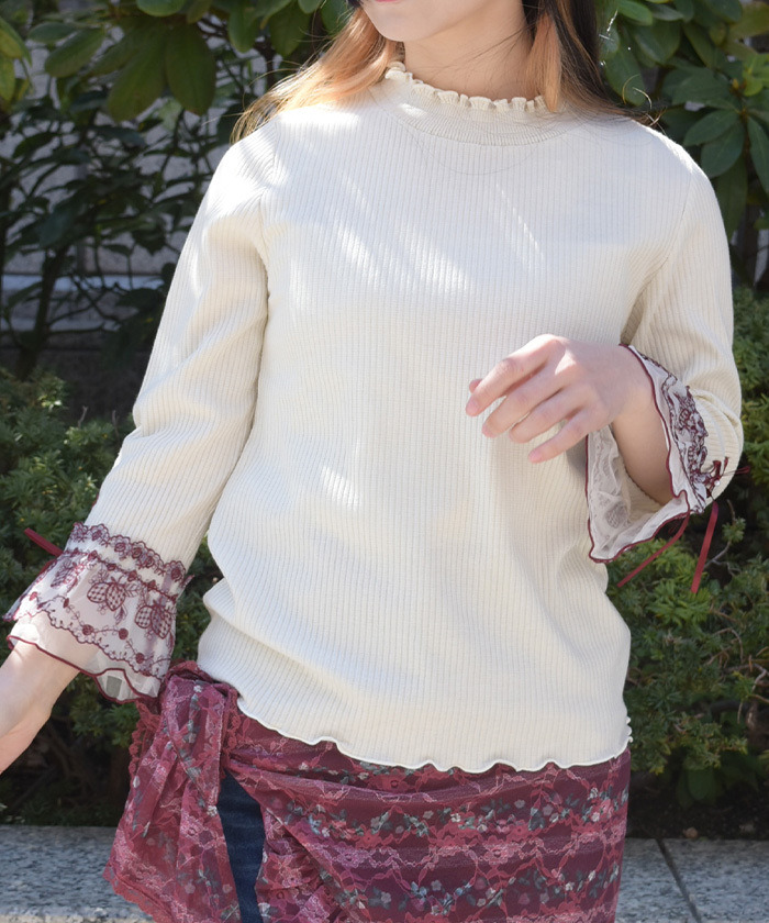 【搭配建議】 可與同系列草莓刺繡傘裙或多WAY披肩搭配,打造完整華麗造型;也可搭配寬褲或作為吊帶洋裝內搭,或僅露出袖口蕾絲做細節點綴,提升層次感。