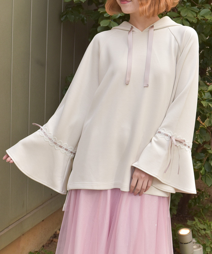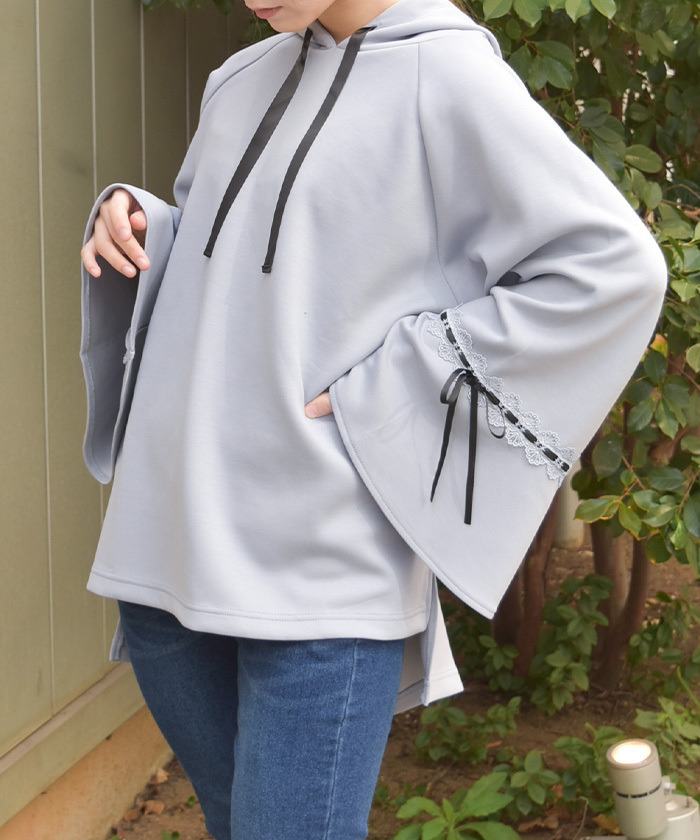 【設計】 袖身拼接處搭配帶有光澤感的緞面蝴蝶結與梯形蕾絲設計。 細緻緞帶營造優雅印象,並固定縫製、不易鬆脫。 依不同配色呈現多樣氛圍,細節充滿巧思。