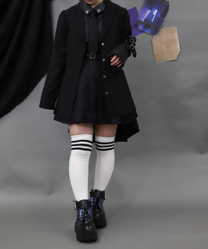 【穿搭建議】 推薦搭配蕾絲綁帶龐克長褲,打造率性男孩感的龐克風格穿搭。亦可與迷你裙混搭,展現俏麗又帶點叛逆氣息的造型,是風格變化度高的外套單品。