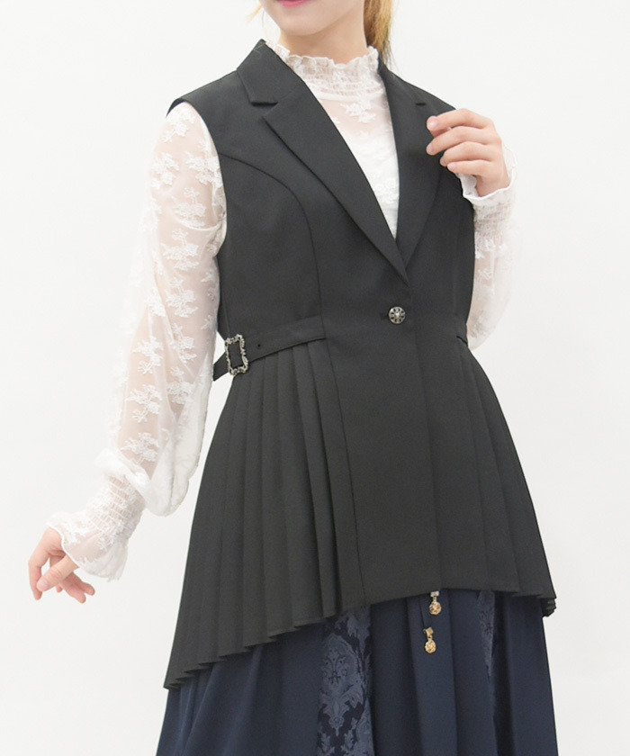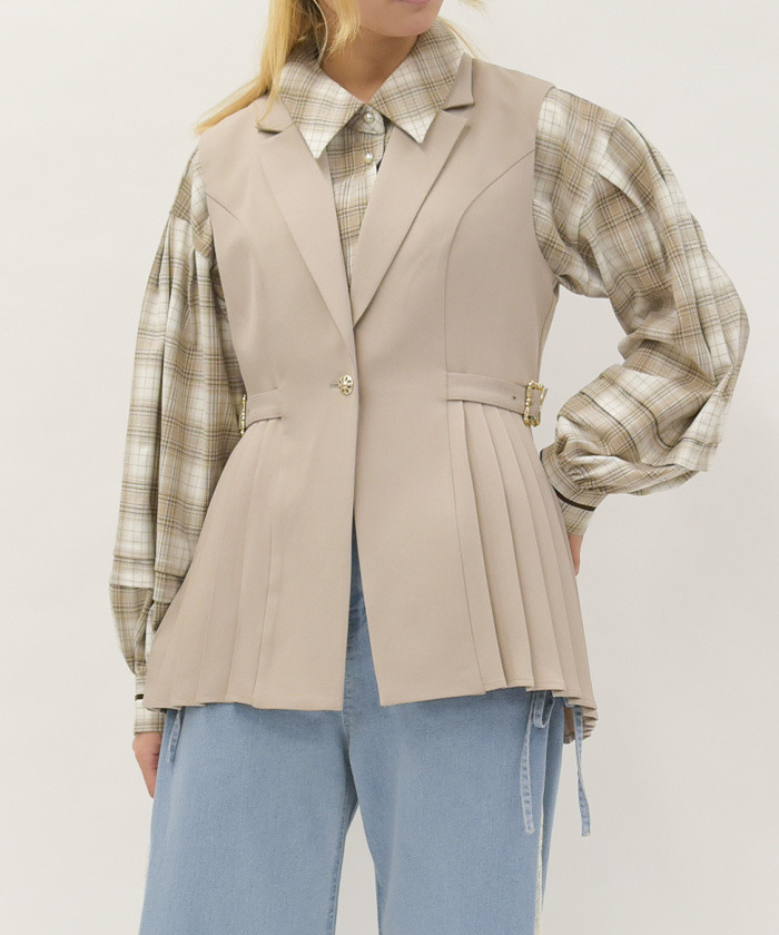 【設計】 側邊百褶營造清晰縱向線條,使整體更顯修長俐落。裝飾性復古扣環細節增添質感亮點。後腰加入打褶設計,降低臀部份量感,讓背影線條更加乾淨利落。