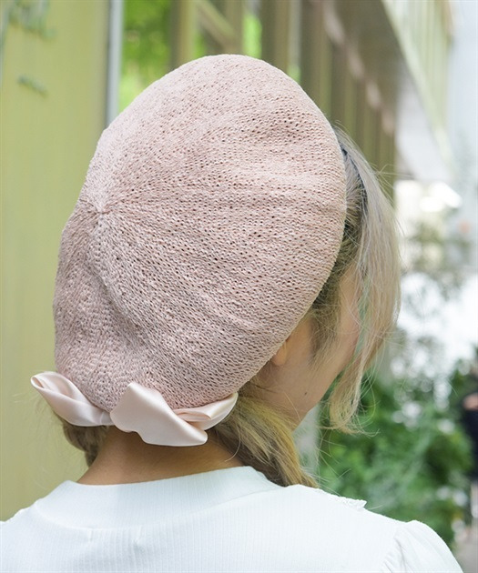 【設計】 採用輕薄透氣的機能針織(Thermo Knit)材質,適合春季配戴。側邊點綴配色緞面蝴蝶結,增添柔美與女性化細節。內側抽繩設計可自由調整尺寸,提升配戴舒適度與穩定性。