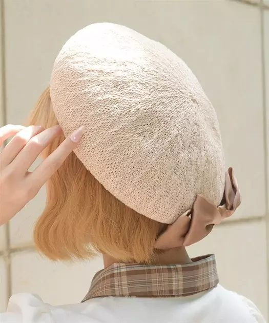 【商品介紹】 配色蝴蝶結設計針織貝雷帽,輕盈透氣材質打造,為春季穿搭增添甜美氛圍的日系帽款單品。