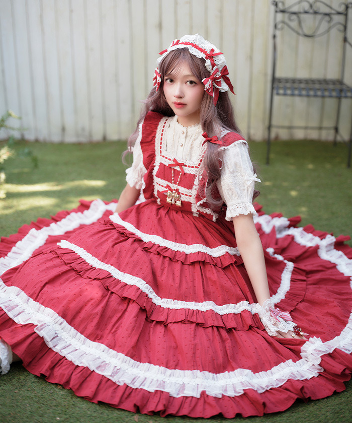 【商品介紹】 坐下時裙襬依然能360°自然展開、滿滿荷葉邊的可愛吊帶洋裝登場♡