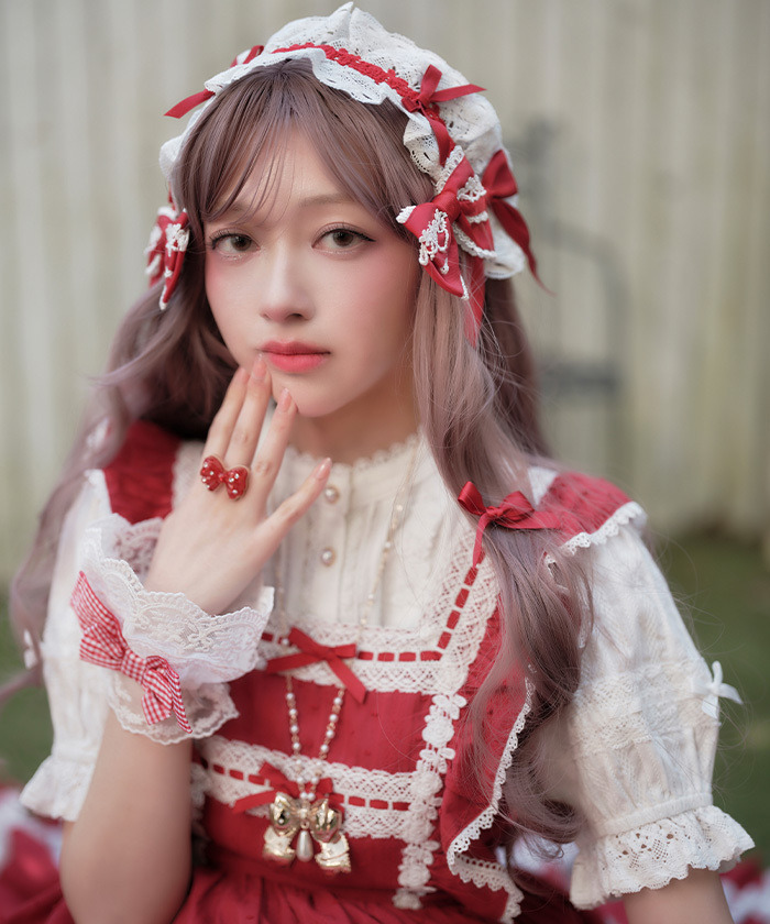 【搭配建議】 可搭配立領或圓領襯衫,都能展現不同的甜美風格。 後腰蝴蝶結可拆卸,可依造型需求自由調整。