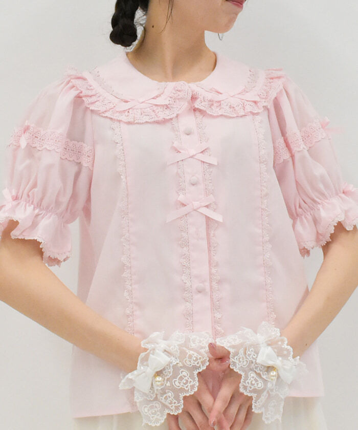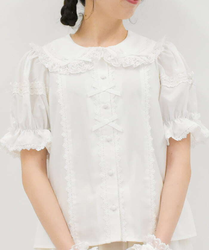 【商品介紹】 經典夏季蕾絲襯衫推出新色,扭繩蕾絲與小蝴蝶結點綴,甜美氛圍滿分,是打造日系女孩風的必備單品。