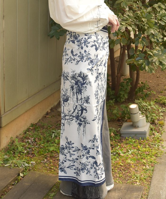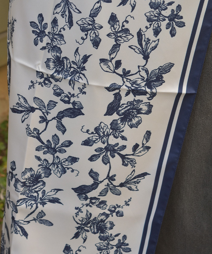 【商品介紹】 大幅印花圍巾,以手繪風花卉圖案呈現,鮮明藍白對比打造清新感,柔軟多用途,是春日造型增添亮點的百搭配件。