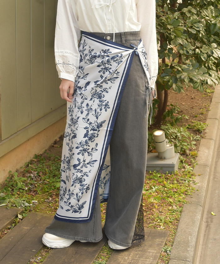 【設計】 採用手繪風花卉印花,藍白鮮明色彩增添清爽氣息,可作頸巾、髮飾或綁於包包裝飾,兼具實用性與造型感,為穿搭增添層次與亮點。
