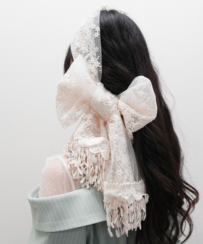 【設計】 兩側施以結合花卉與裝飾圖案的華麗刺繡,呈現優雅精緻的設計感。 披巾兩端的蕾絲流蘇增添造型亮點。 適度的透膚感營造清爽輕盈氛圍。 可隨意圍於頸間或披在肩上,為穿搭增添華麗裝飾感◎