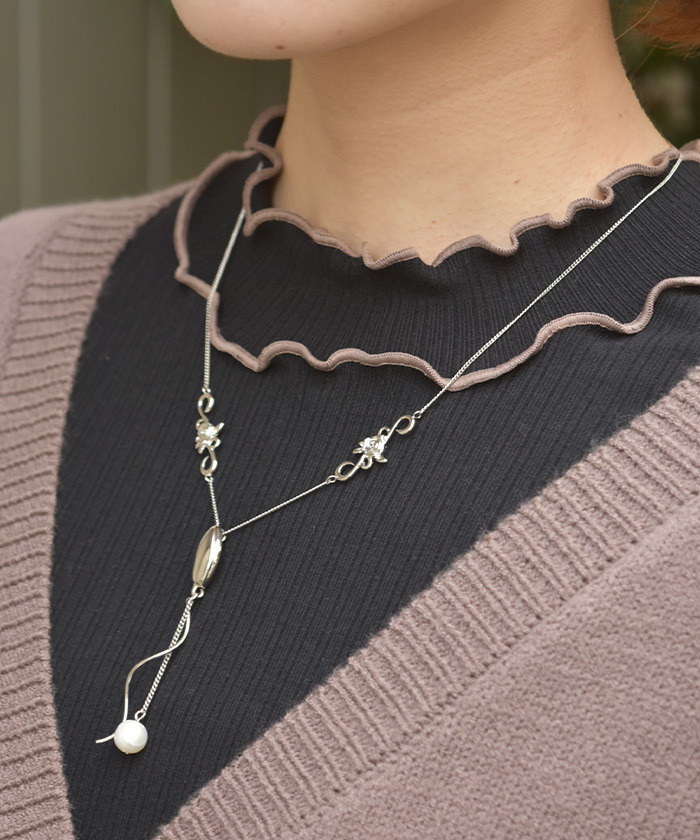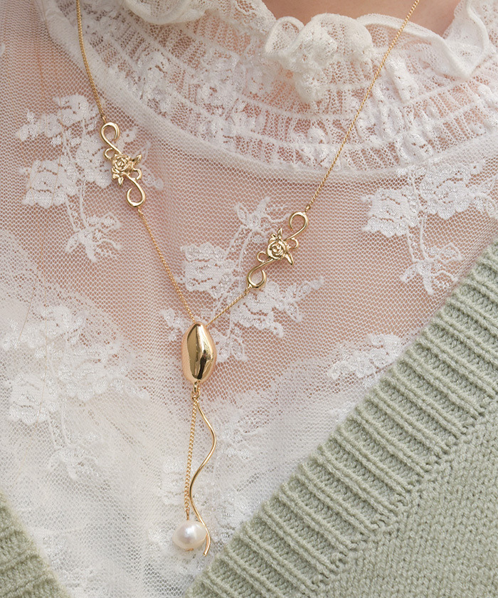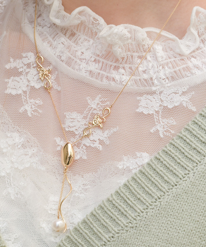 【設計】 光澤感十足的珍珠為主角,整體設計纖細簡約。 經典不易膩的簡約風格,無論季節或穿搭都能廣泛搭配。 連接部位點綴了玫瑰造型,低調呈現女性柔美感。 為日常穿搭增添細膩的小巧思,是點綴造型的完美單品。
