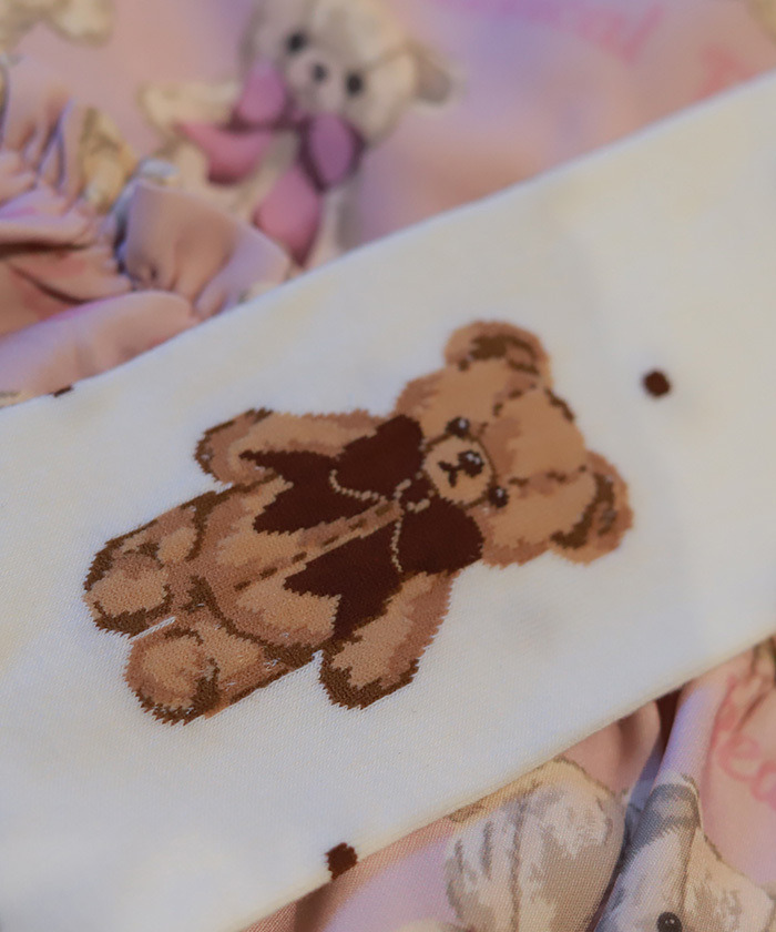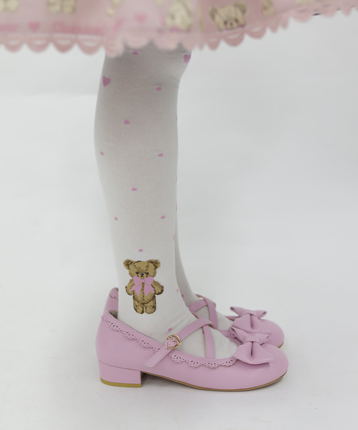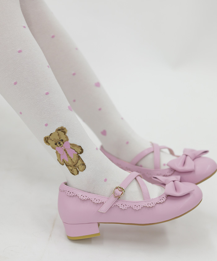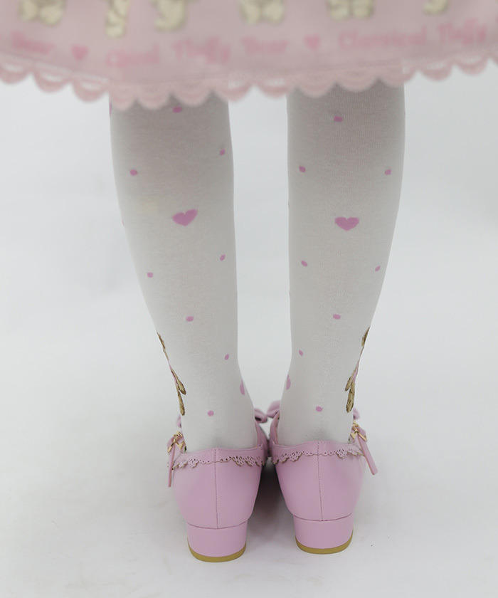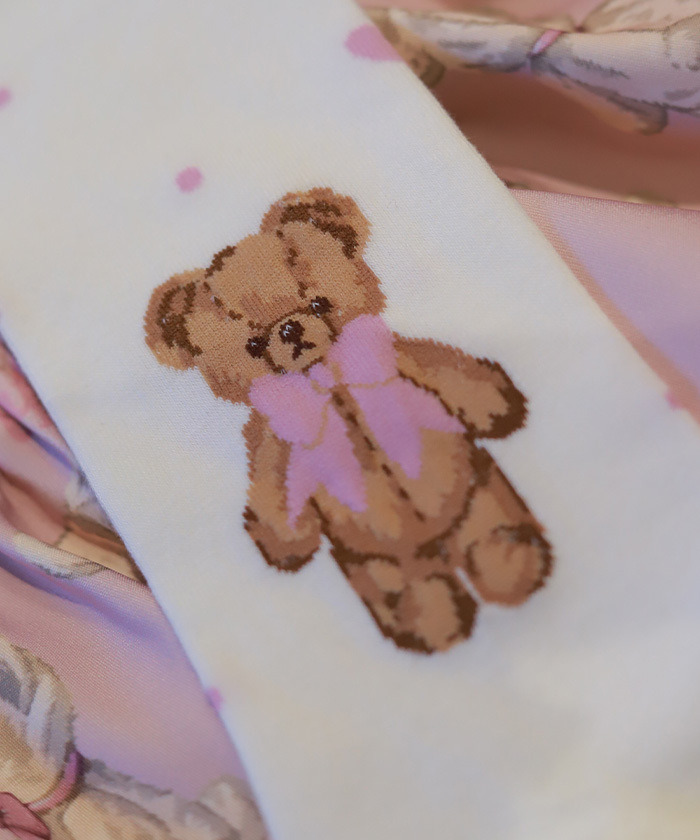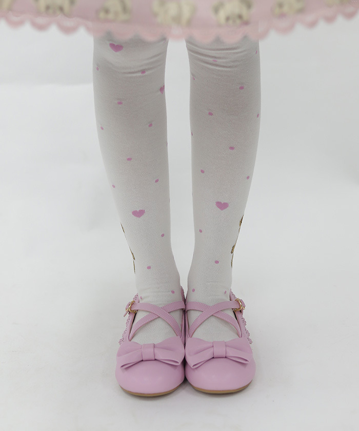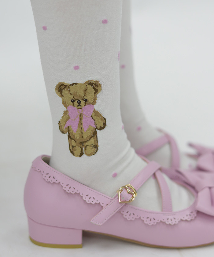 【設計】 採用人氣Fluffy Bear圖案的過膝襪,足踝側點綴可愛小熊,搭配圓點中隱約混入的小愛心,甜美滿分。
