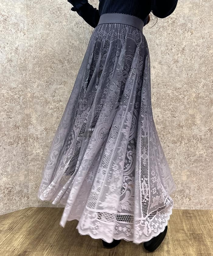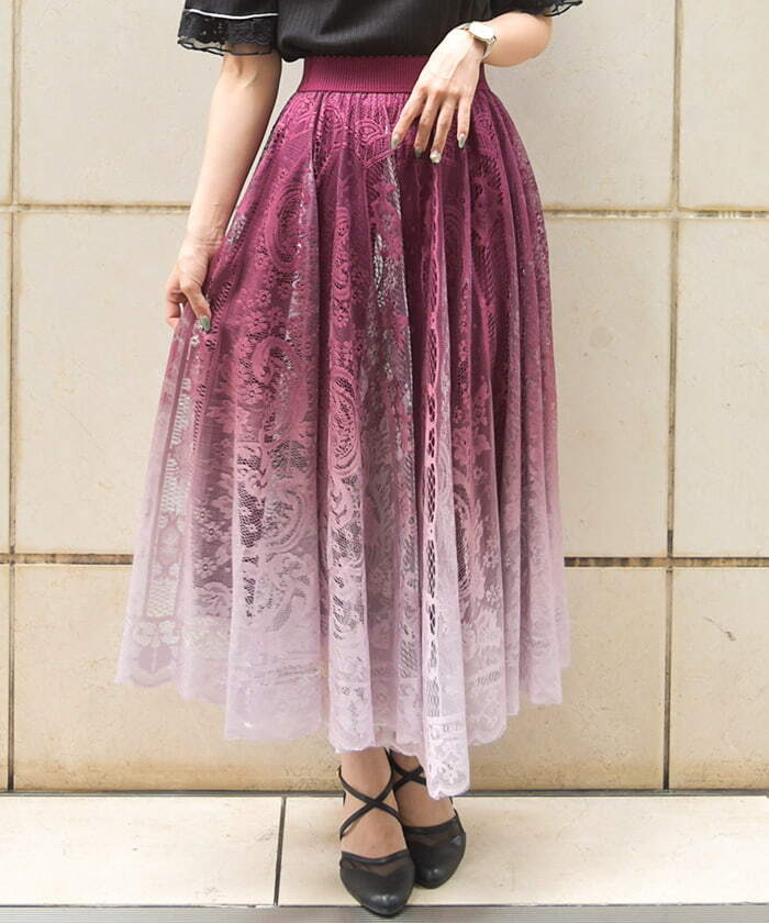以漸層色彩呈現的精美全蕾絲裙款。