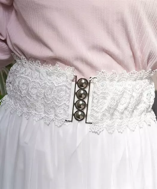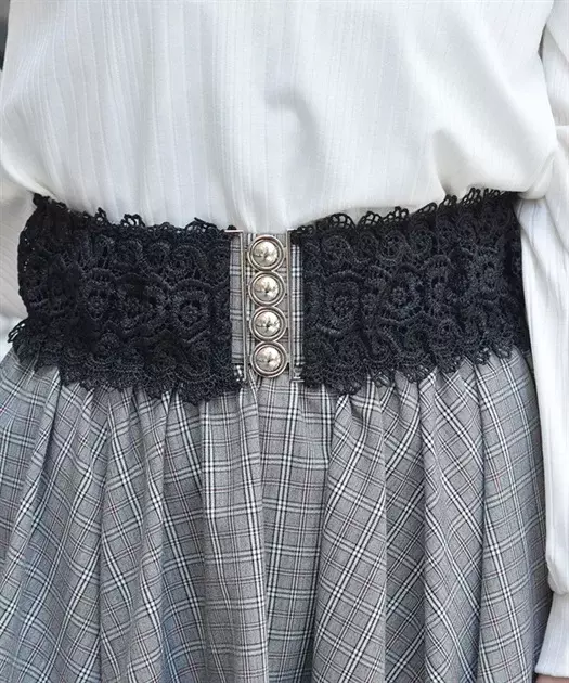 【商品介紹】 以蕾絲點綴打造的華麗寬版腰帶。