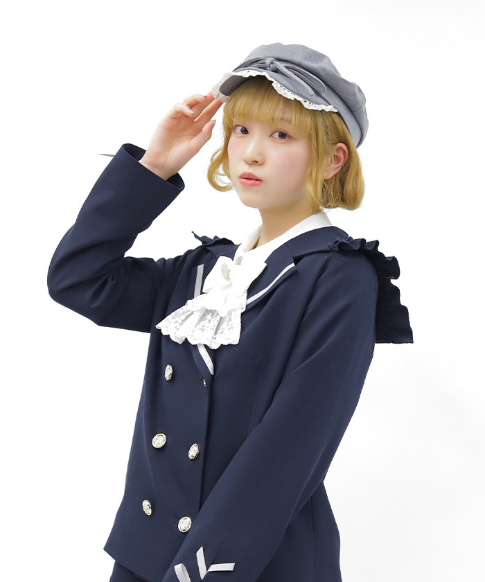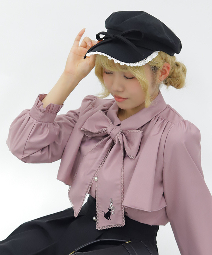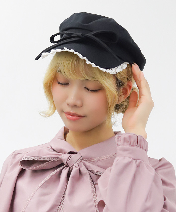 【設計】 採用春季感蕾絲拼接,帽型簡約俐落,大蝴蝶結作為視覺焦點,荷葉邊蕾絲點綴臉周,增添明亮與可愛感,兼具時尚與少女感。