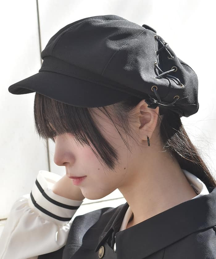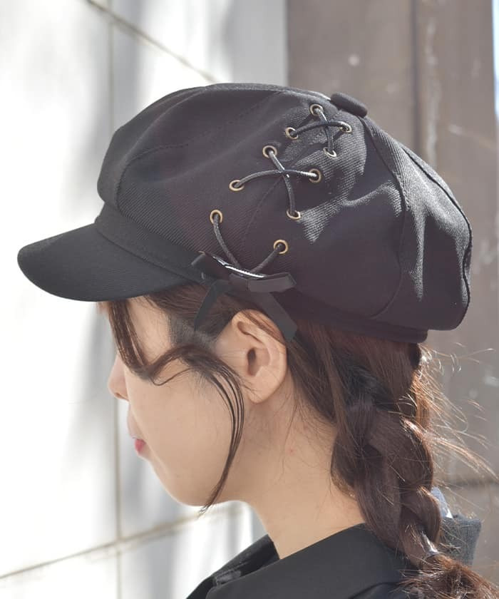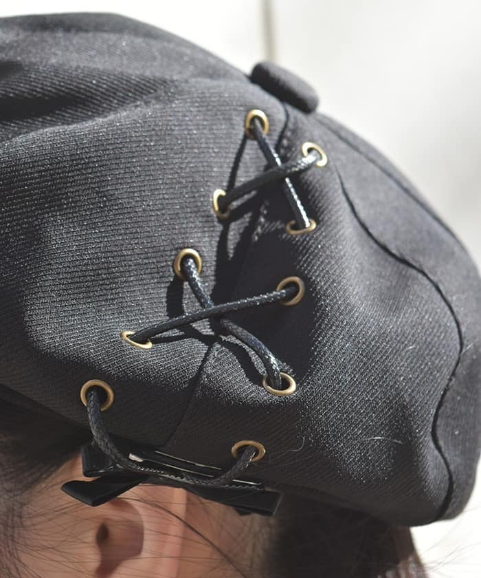 【商品介紹】 側邊綁帶設計的貝雷帽。