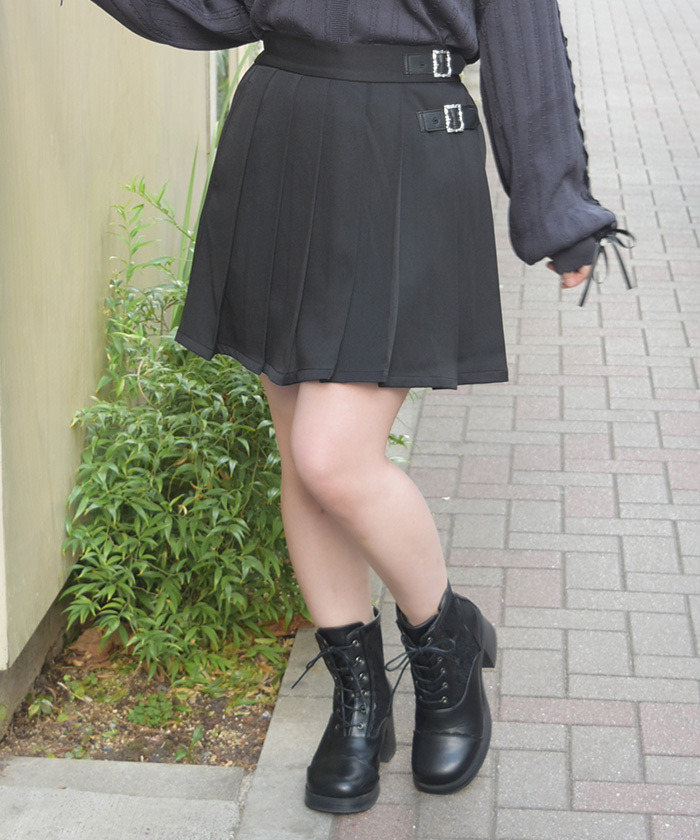 【設計】 前腰帶細節呈現古典優雅感,百褶設計立體感十足,隨動作呈現自然弧度;迷你裙長設計兼顧舒適感與安全感,兼具實穿性與時尚感。