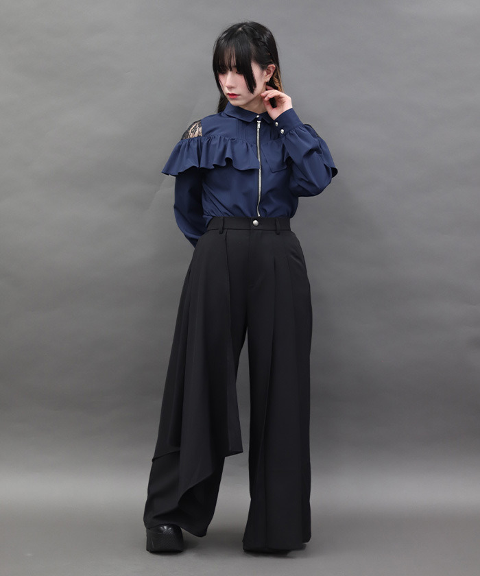 【穿搭建議】 可搭配同系列「前拉鍊設計襯衫」打造完整套裝風格,在摩登感中融入柔美元素,呈現甜酷平衡的全新褲裝造型。也能搭配簡約上衣或合身針織衫,讓不對稱設計成為視覺焦點,輕鬆完成時髦穿搭。