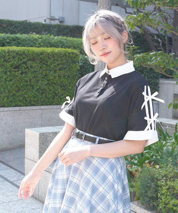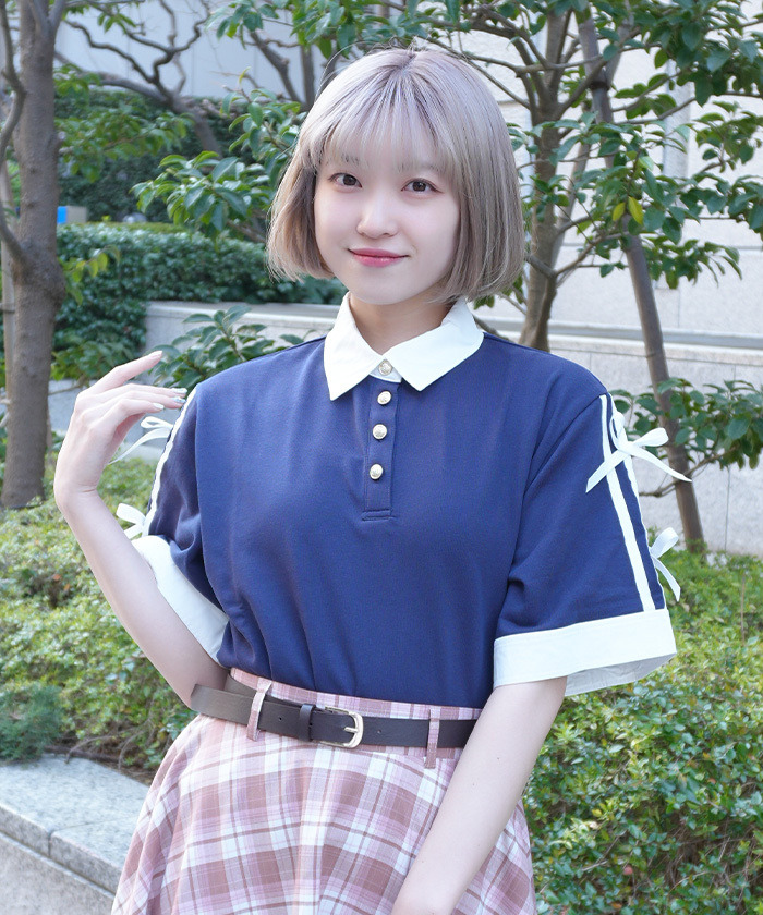 【搭配建議】 可搭配傘裙或迷你下身打造甜美學院風,也適合搭配簡約下身,展現清新又俐落的日常穿搭。