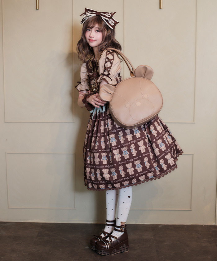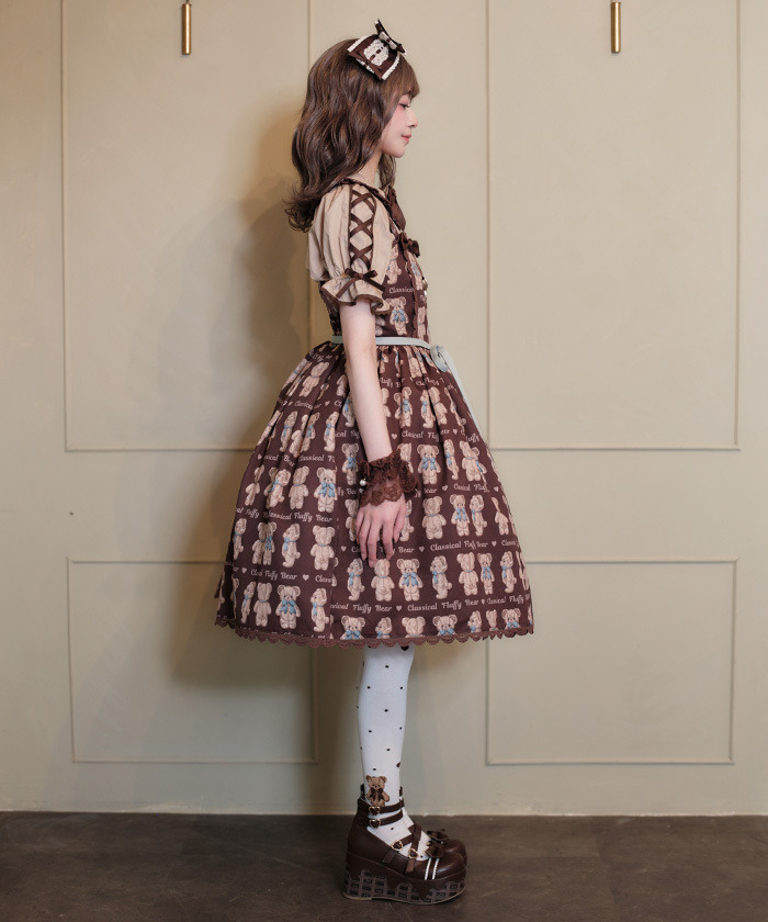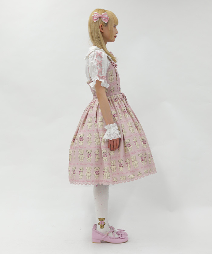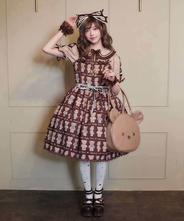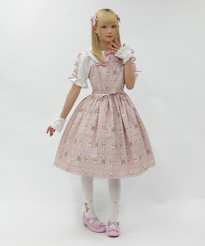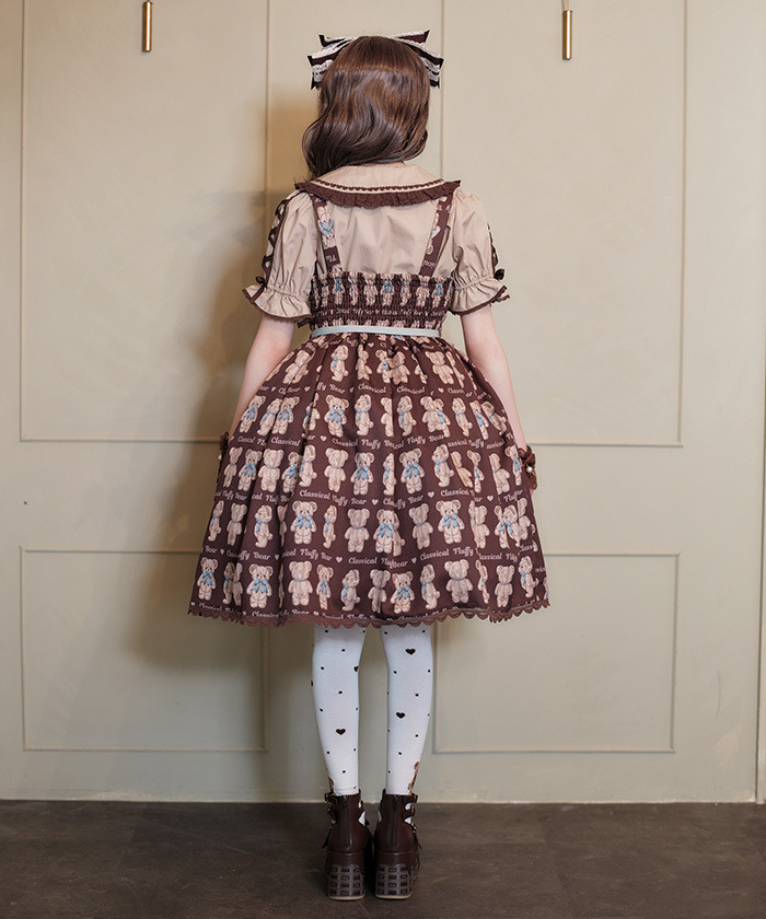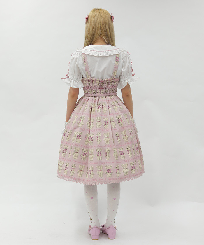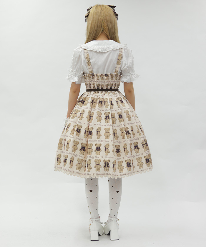 【設計】 人氣Fluffy Bear圖案以過去熱門色系回歸,錯過當時的粉絲或看到朋友穿著而心動的人,千萬不要錯過這次機會! 後身採用鬆緊抓皺設計,方便穿脫,搭配腰間可拆式綁帶的連身裙,穿著靈活舒適。