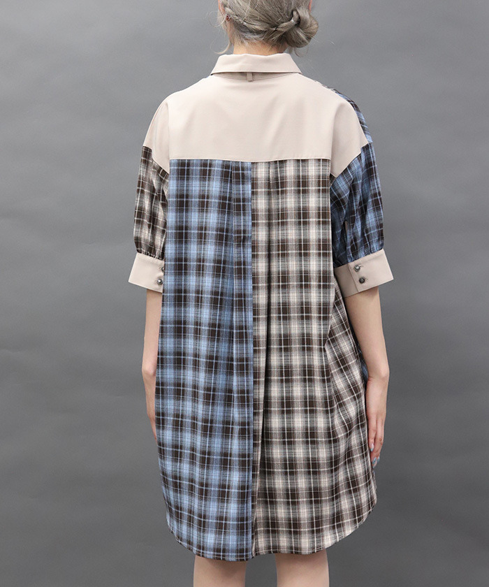 【商品介紹】 格紋×格紋拼接設計,打造吸睛亮點的襯衫洋裝。寬鬆版型可單穿也可作為外套,輕鬆變化多種穿搭風格,是兼具造型感與實穿性的時尚單品。