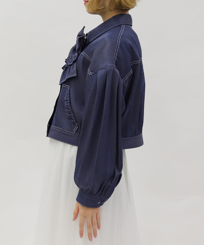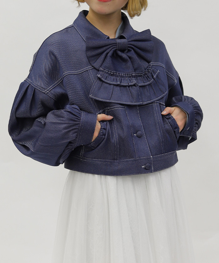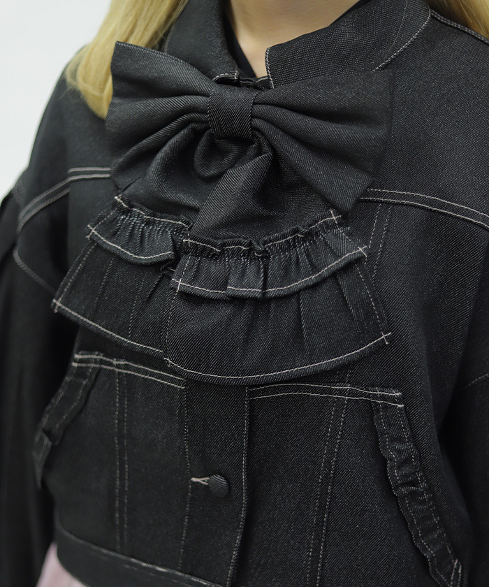 【商品介紹】 醒目大蝴蝶結點綴的牛仔外套,搭配雙色縫線設計,營造休閒中帶甜美的少女感,是春季日常與外出穿搭的百搭單品。
