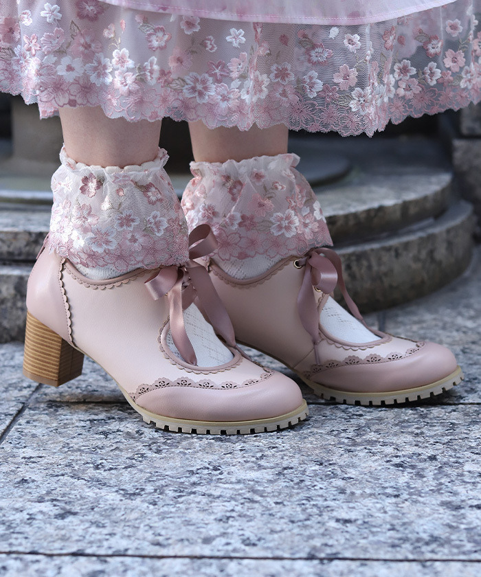 【搭配建議】 可搭配同系列櫻花單品,從足部到整體造型皆充滿春日華麗感。即使搭配現有服裝,也能輕鬆營造春季氛圍,與簡約洋裝或裙裝搭配也十分合適。