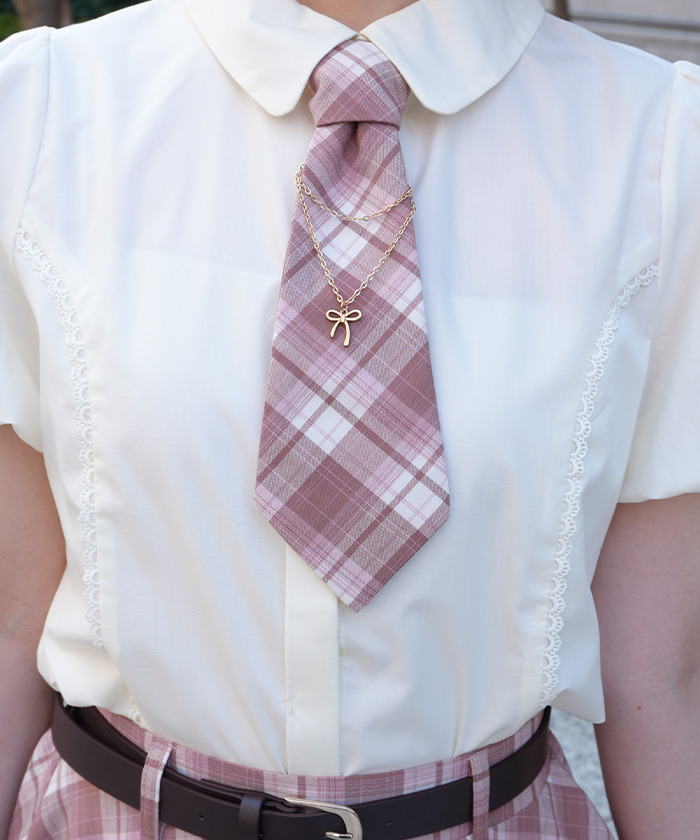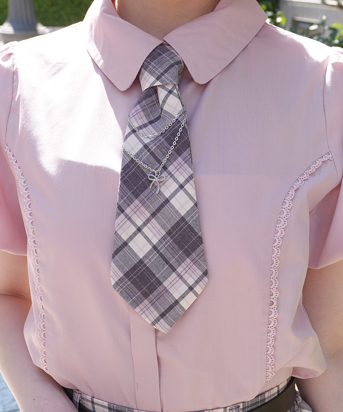 【商品介紹】 彩色格紋布料打造的襯衫,附同款領帶與可愛鏈飾,結合甜美與流行感,輕鬆搭配同系列裙裝。