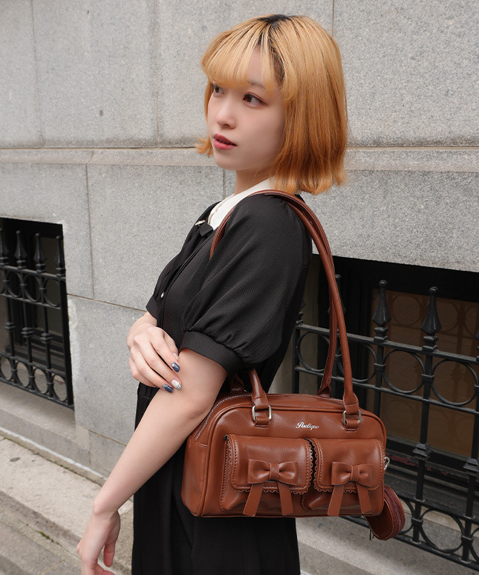 【商品介紹】 這款 POETIQUE 波士頓包 適合書院風穿搭,採用復古感合成皮革,肩帶加長可肩背,容量足夠放置500ml水瓶。附心形小包,可收納耳機、唇膏等小物,兼具可愛與實用性。