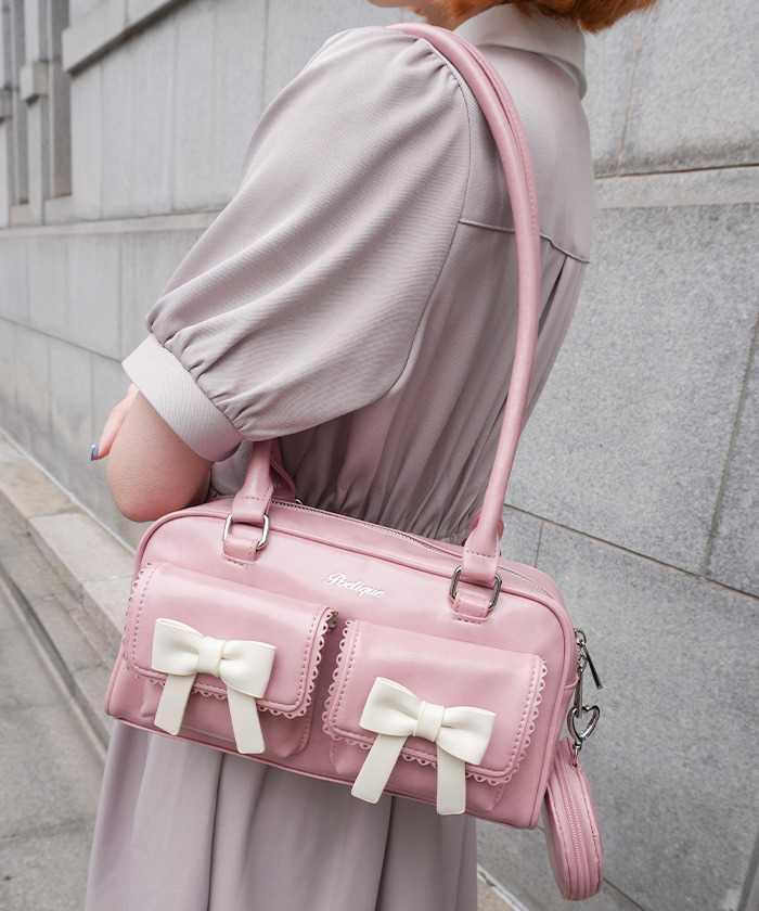 【設計】 復古質感合皮材質,雙色設計(甜美粉/書院棕)增添俏麗感;立體口袋與心形小包設計,方便收納配件與隨身小物;大容量側邊寬度,實用又時尚。