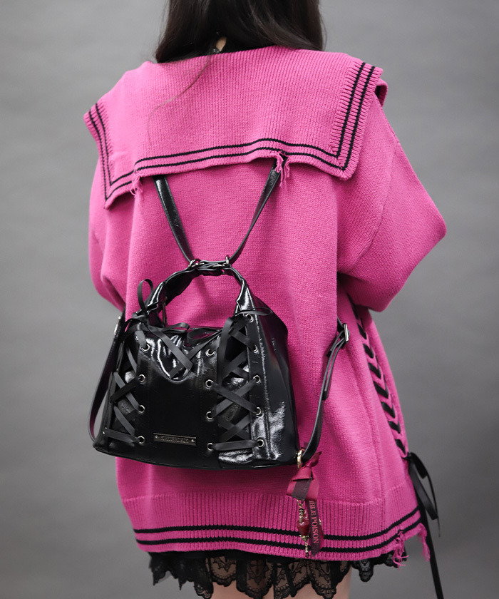 【設計】 兼具設計感與實用性的多用途包款登場。 加入綁帶設計與品牌金屬標牌,細節滿滿又充滿個性。 調整背帶長度即可作為肩背包使用,將背帶從兩側拉起則可變身為後背包,一包多背,實用度滿分。 收納空間充足,外出使用剛剛好;背面附有平口口袋,放置票卡或小物非常方便。