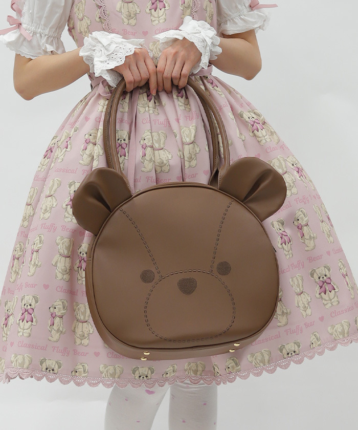 【設計】 採用質感合成皮革製成,容量充足,日常收納無負擔。 以同色系刺繡勾勒出小熊臉部輪廓,低調中帶有可愛感。 包內為經典格紋設計,增添細節層次。 提把長度適中,可輕鬆肩背,實用性滿分。