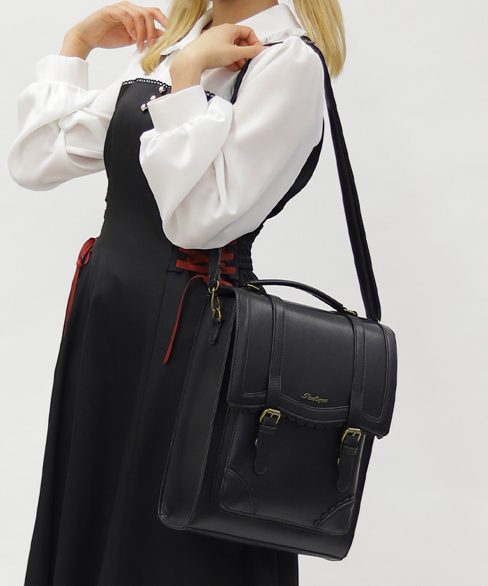 【設計】 這款書包型包款非常適合學院風或甜美風穿搭。 可手提、肩背或後背使用,為3WAY設計,且可收納A4尺寸文件,非常實用◎ 包身具有足夠厚度與容量,不僅適合日常使用,也推薦於應援活動或需要攜帶較多物品的外出場合。