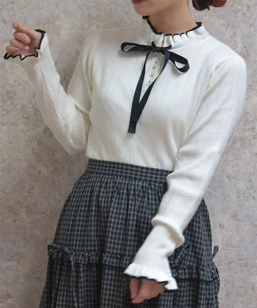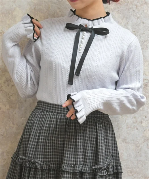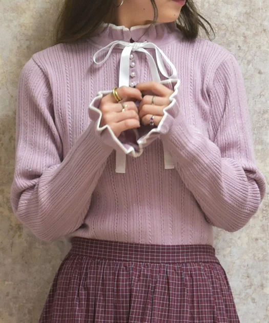 這款可愛的針織套頭衫帶有微妙的閃光。正反兩面均可穿著,讓您根據心情及當日穿搭變換造型。雖然帶有閃光,但觸感柔軟舒適,不會扎人。