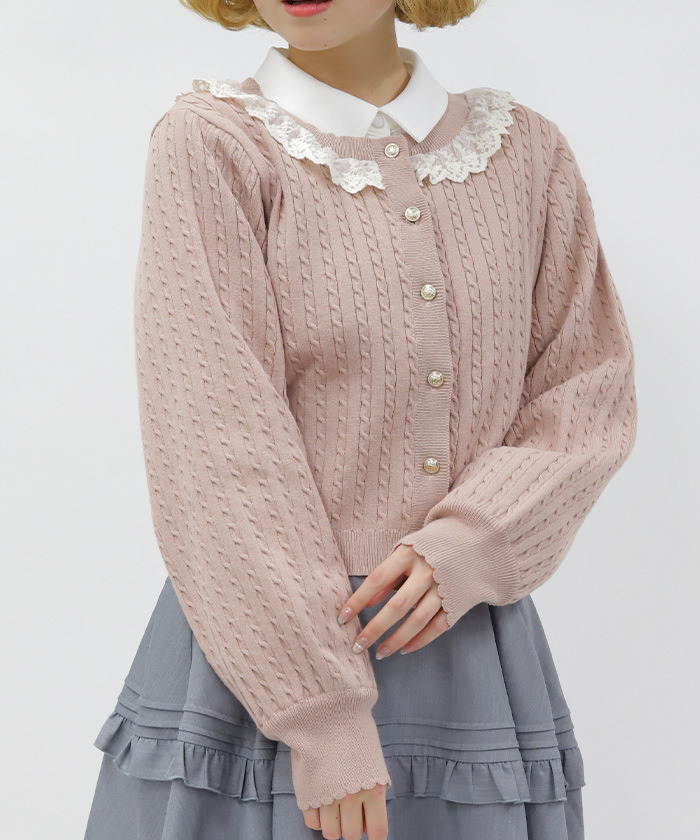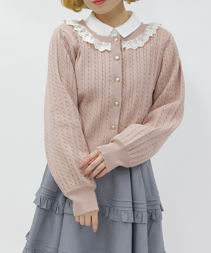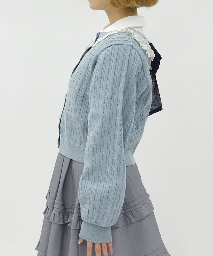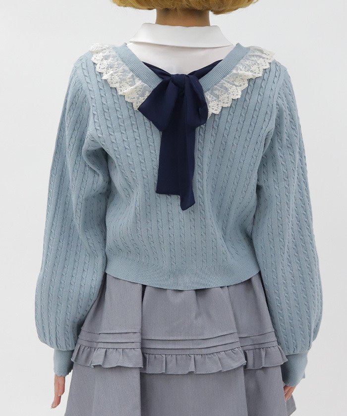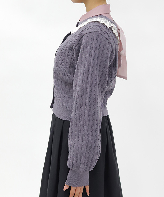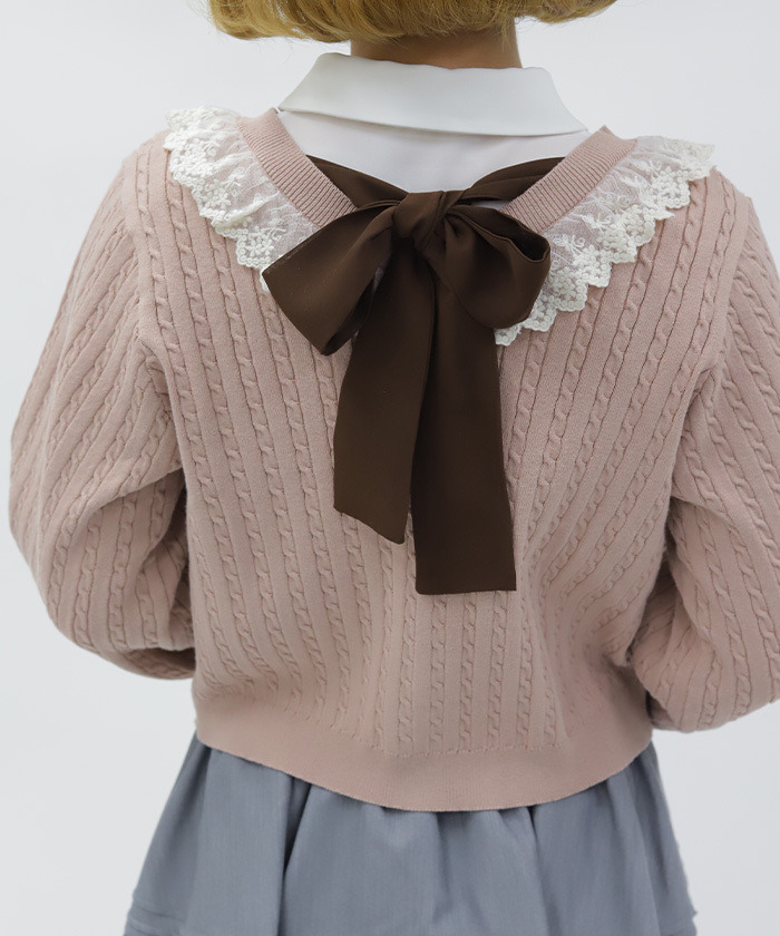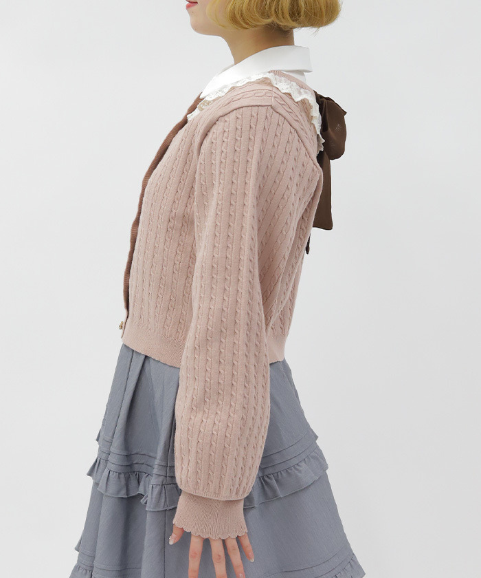 【商品介紹】 配色俏麗的少女感麻花針織開襟衫,柔軟舒適、春季必備,搭配徽章釦與背後蝴蝶結點綴,甜美中帶出學院風氣息,是春日百搭單品。