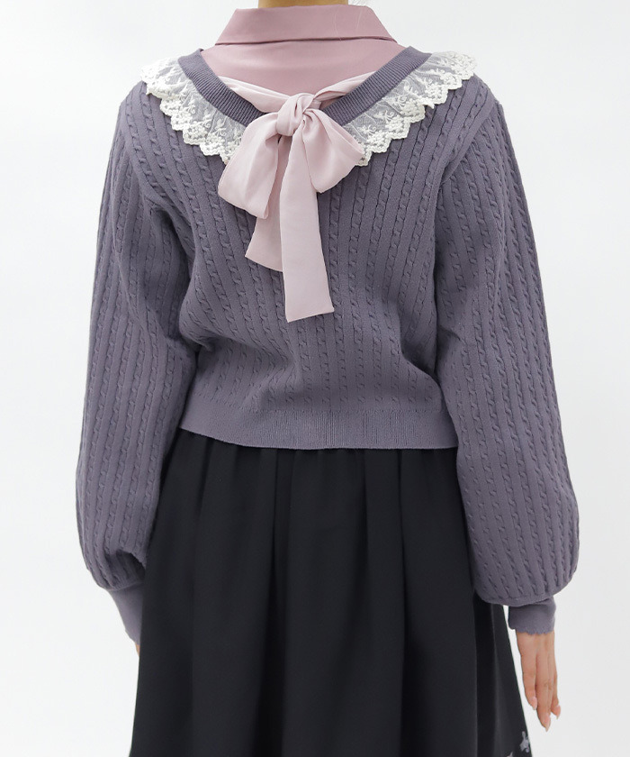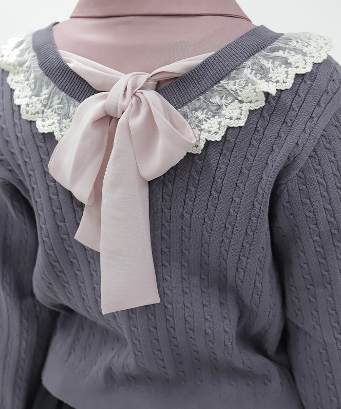 【設計】 採用柔軟透氣針織材質,手感舒適,季節交替穿著輕盈自在。徽章釦與背後蝴蝶結設計增添細節亮點,兼具甜美與俏皮感,打造少女感學院風格。